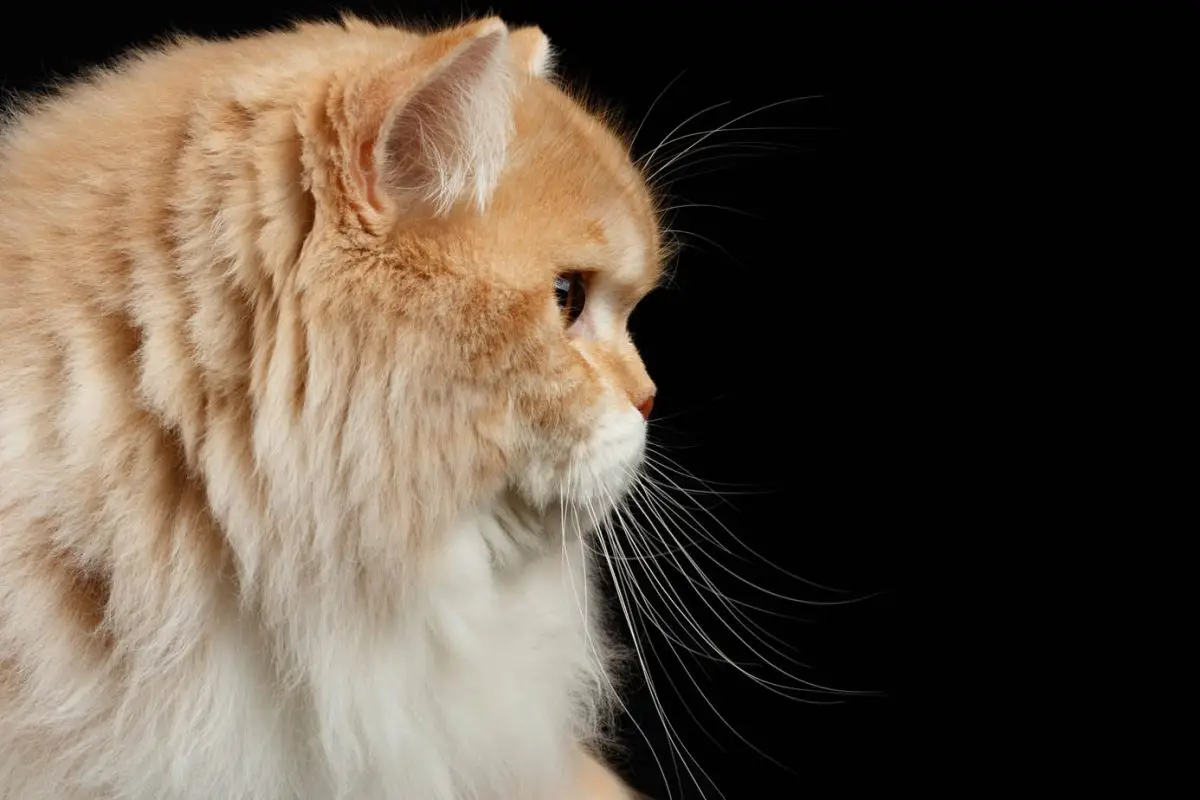 Closeup Retrato de Red Big Persa Cat em Perfil View no fundo preto